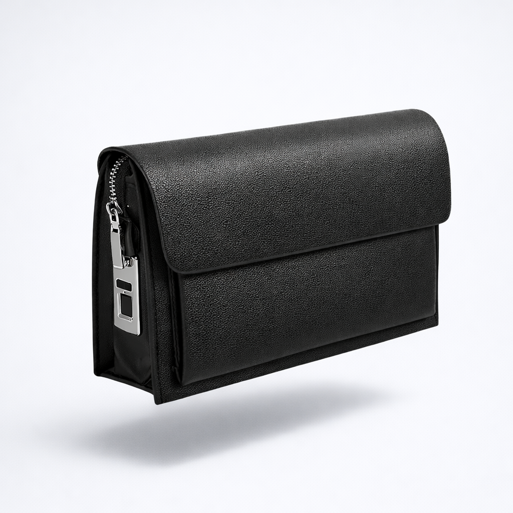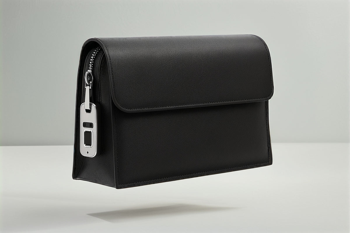 Our smart fingerprint-lock bag blends modern security with timeless design. Crafted in smooth black leather with a sleek metal lock, it keeps essentials protected while staying refined enough for both work and evenings out.